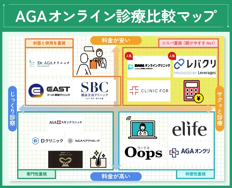 - Dr.AGAクリニック:AGA専門医がオンライン診察を担当