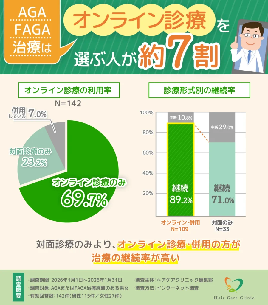 AGA治療でオンライン診療を選んだ方は約8割